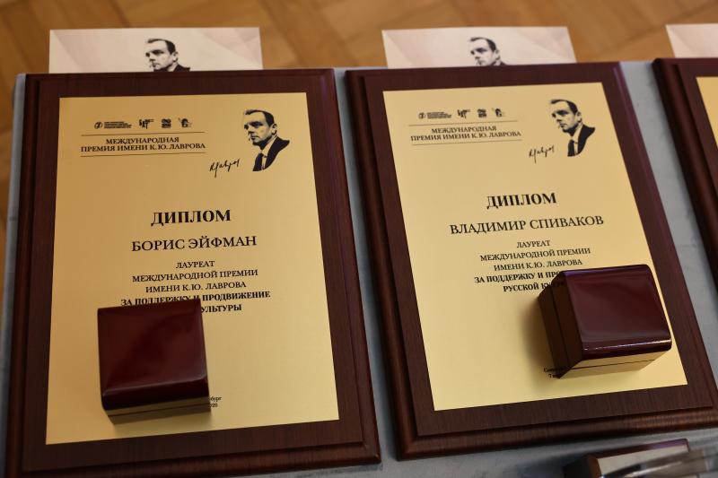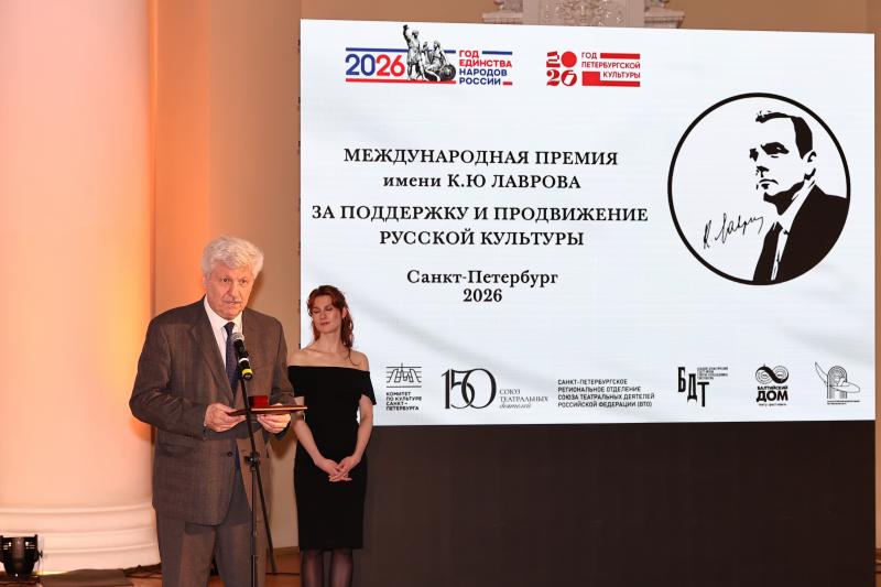 В этом году лауреатами Международной премии имени К.Ю. Лаврова «За поддержку и продвижение русской культуры» в 2026 году стали: художественный руководитель и главный дирижёр Национального филармонического оркестра России и Государственного камерного оркестра «Виртуозы Москвы» народный артист СССР Владимир Спиваков; художественный руководитель Театра балета Бориса Эйфмана и президент Академии танца народный артист РФ Борис Эйфман; президент Национального драматического театра России (Александринского театра) народный артист РФ Валерий Владимирович Фокин; основатель и руководитель детского театра «Апрелик» Лидия Дробич (Франция); Государственный национальный русский театр имени Чингиза Айтматова (Киргизия). Памятным призом Международной премии имени К.Ю. Лаврова отметили директора Государственного драматического театра имени А.С. Грибоедова (Тбилиси) Николая Свентицкого (посмертно).