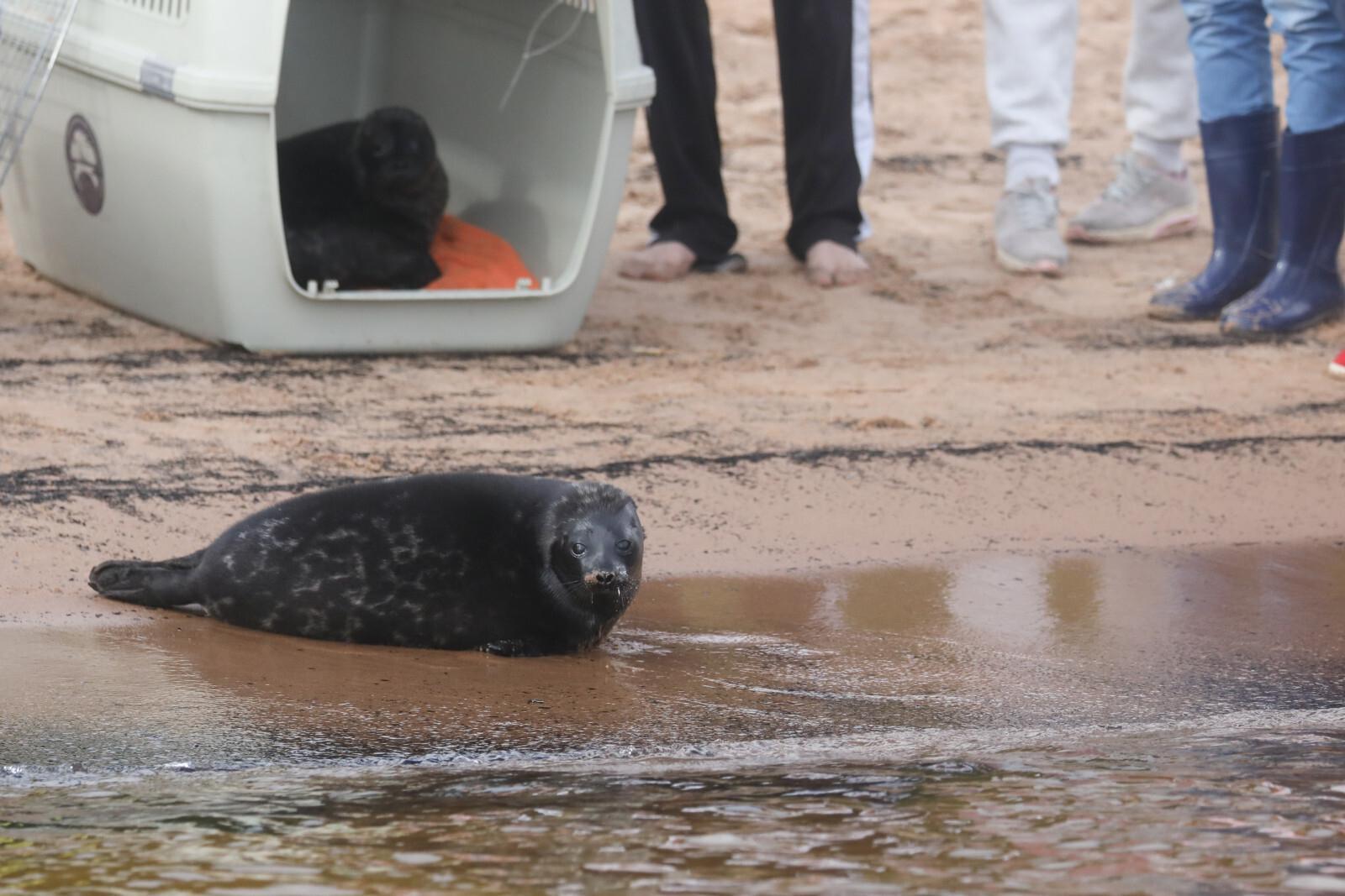 Из-за того, что сейчас очень холодная вода, а у тюленя еще недостаточно жирового слоя, малыш снова оказался на пляже.