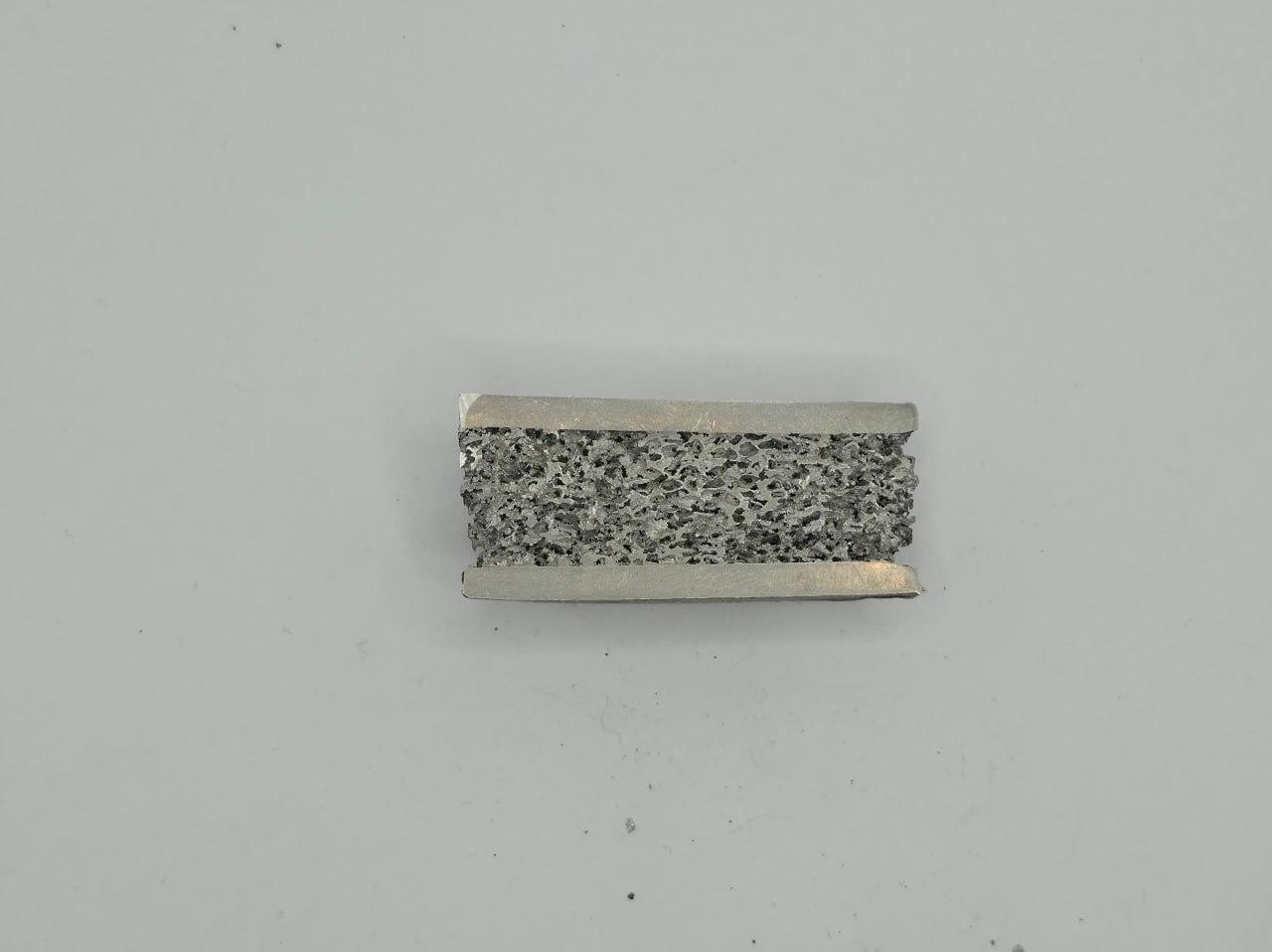 Пеноалюминий представляет собой функциональный материал с множеством пузырьков, напоминающий пористый шоколад. Он изготавливается из алюминия с добавлением специальных химических веществ – порофоров, которые при нагревании выделяют газ и вспенивают материал, образуя поры. Пеноалюминий легкий, не тонет в воде, обладает высокими вибро- и звукозащитными свойствами, а также эффективно гасит ударные нагрузки.