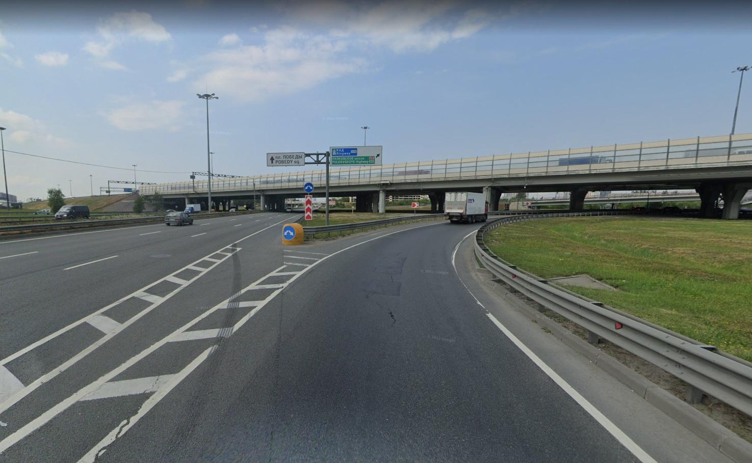 В Петербурге на развязке Кольцевой автодороги с Московским шоссе на двадцать дней полностью перекроют для движения транспорта два съезда.