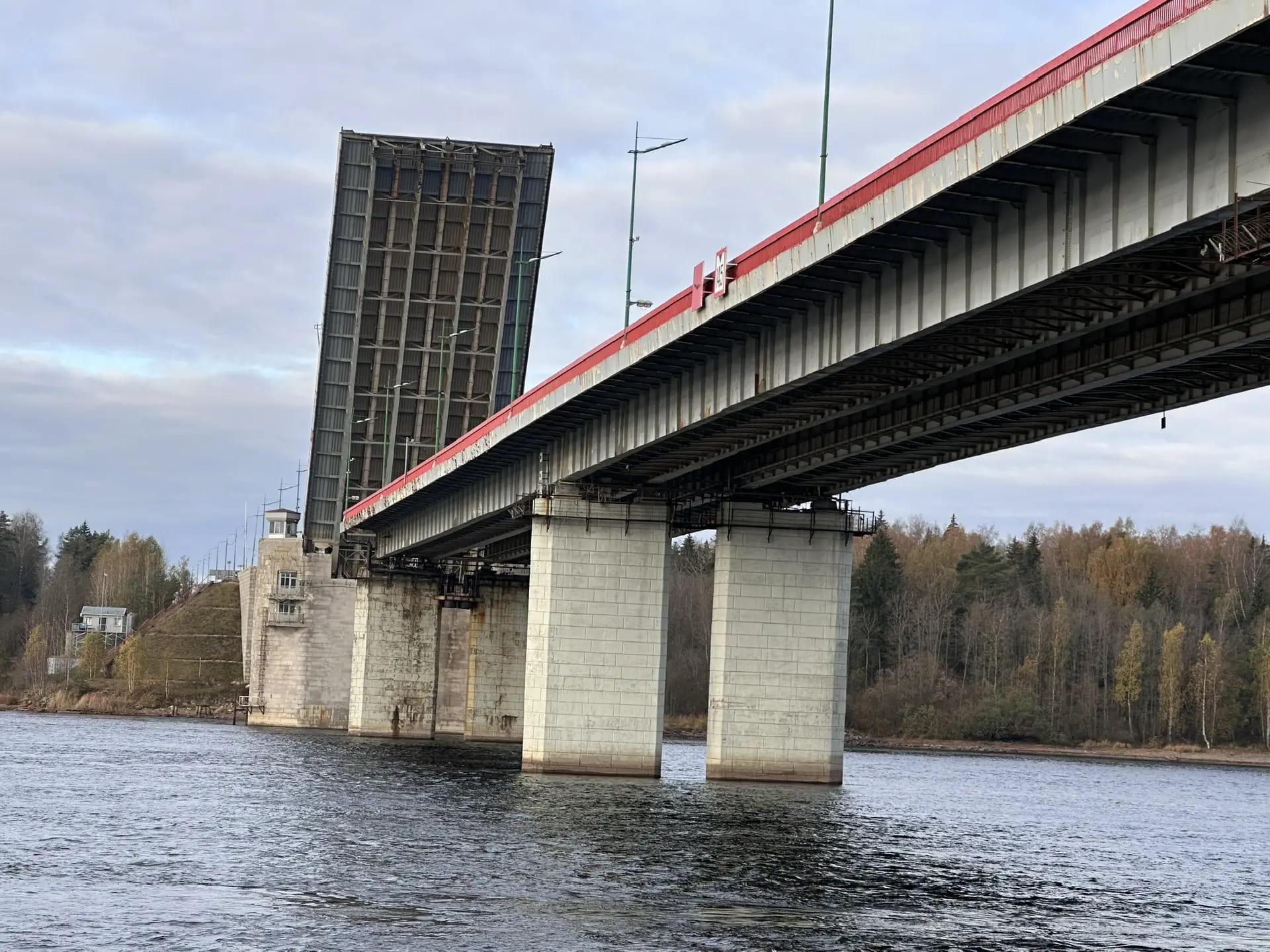 В Кировском районе Ленинградской области на федеральной трассе Р-21 «Кола» разведут Ладожский мост. Ранее разводка планировалась 9 апреля, но из-за сильного ветра ее перенесли.