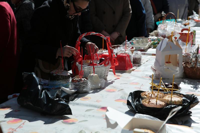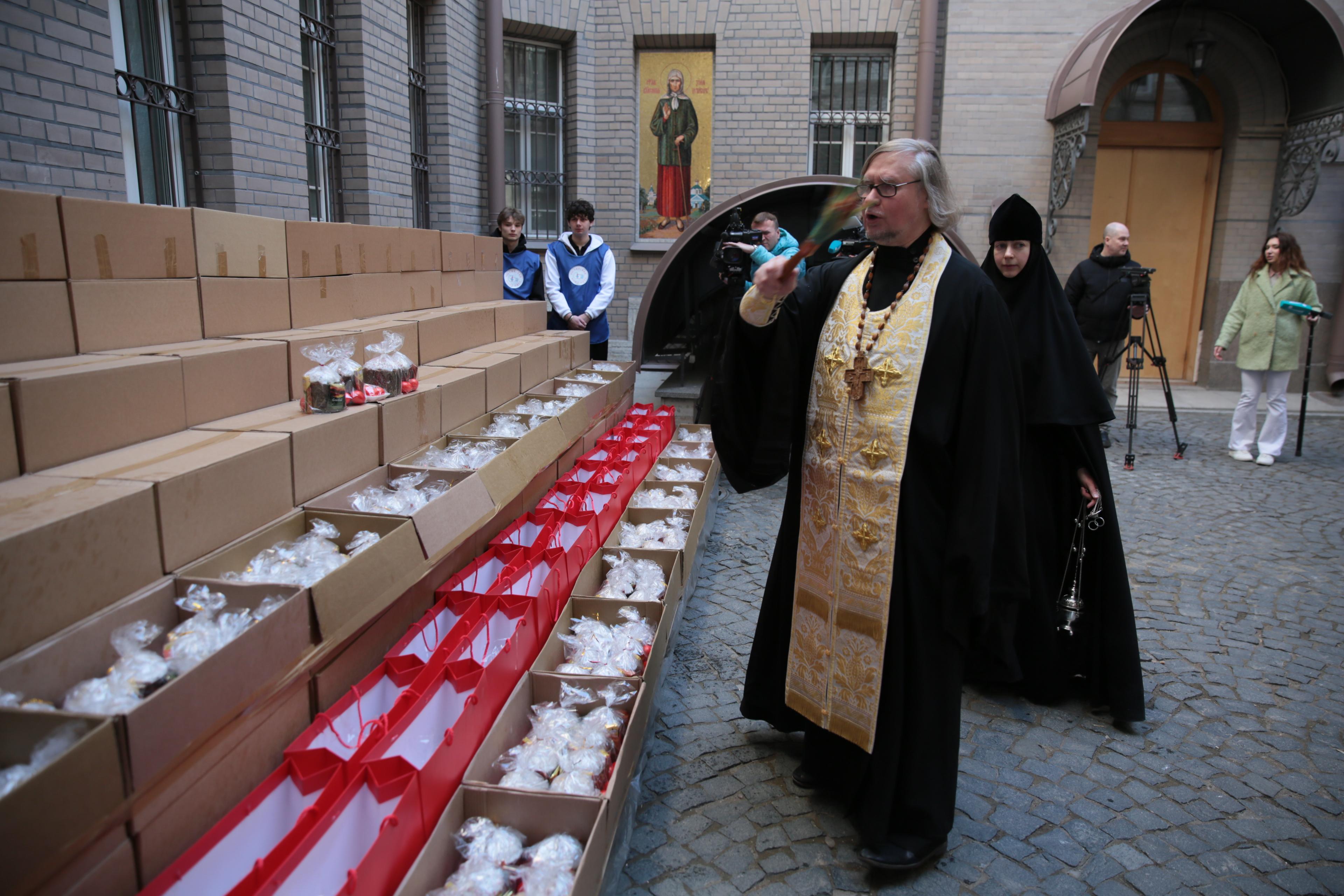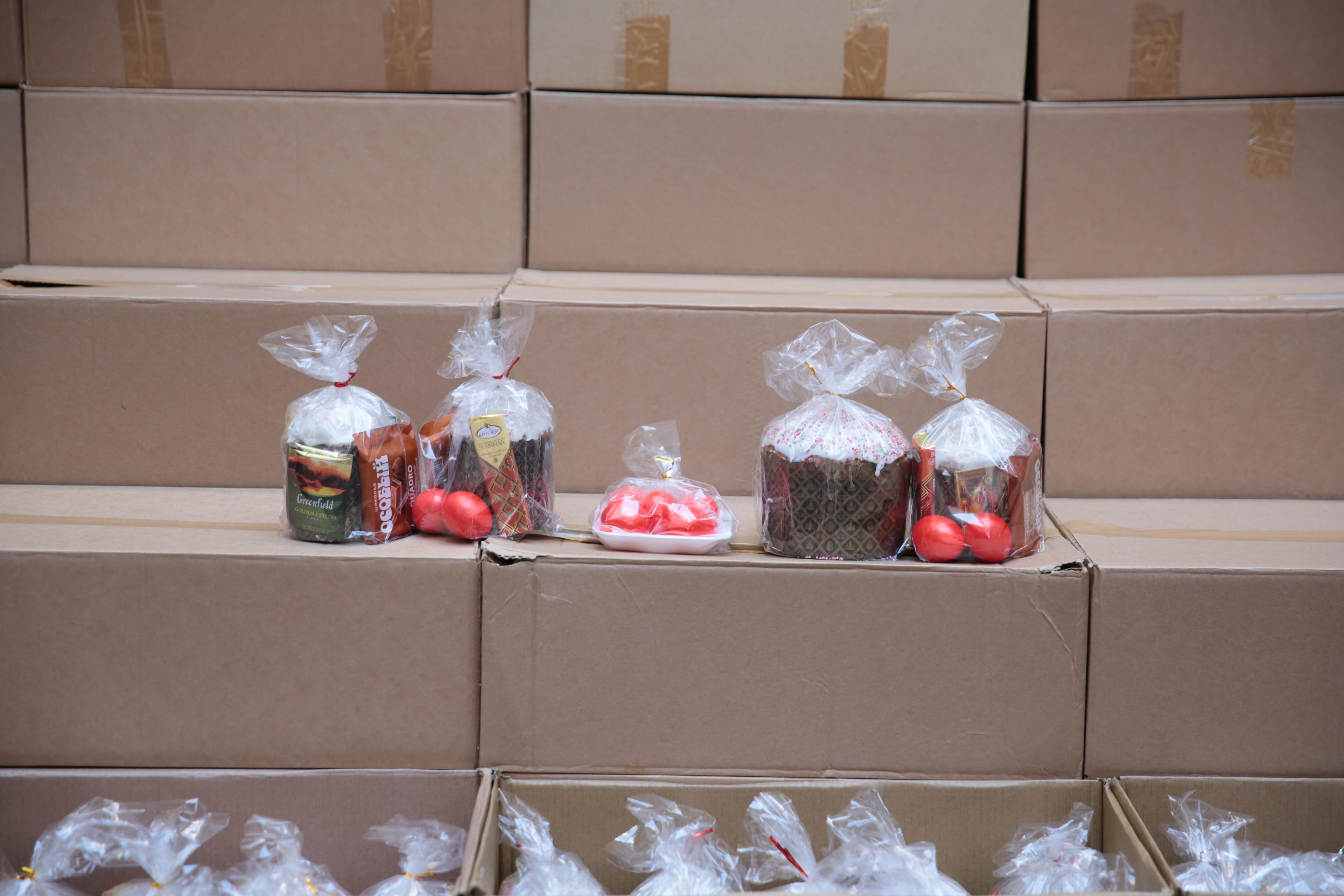 Подарки подготовили Санкт-Петербургское отделение Российского фонда мира совместно с Иоанновским ставропигиальным женским монастырем. В наборы вошли традиционные пасхальные угощения и духовные атрибуты.