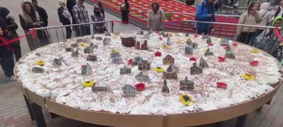 Праздничное изделие представили на территории парка миниатюр. Священник освятил кулич, после чего угощения раздали всем посетителям.