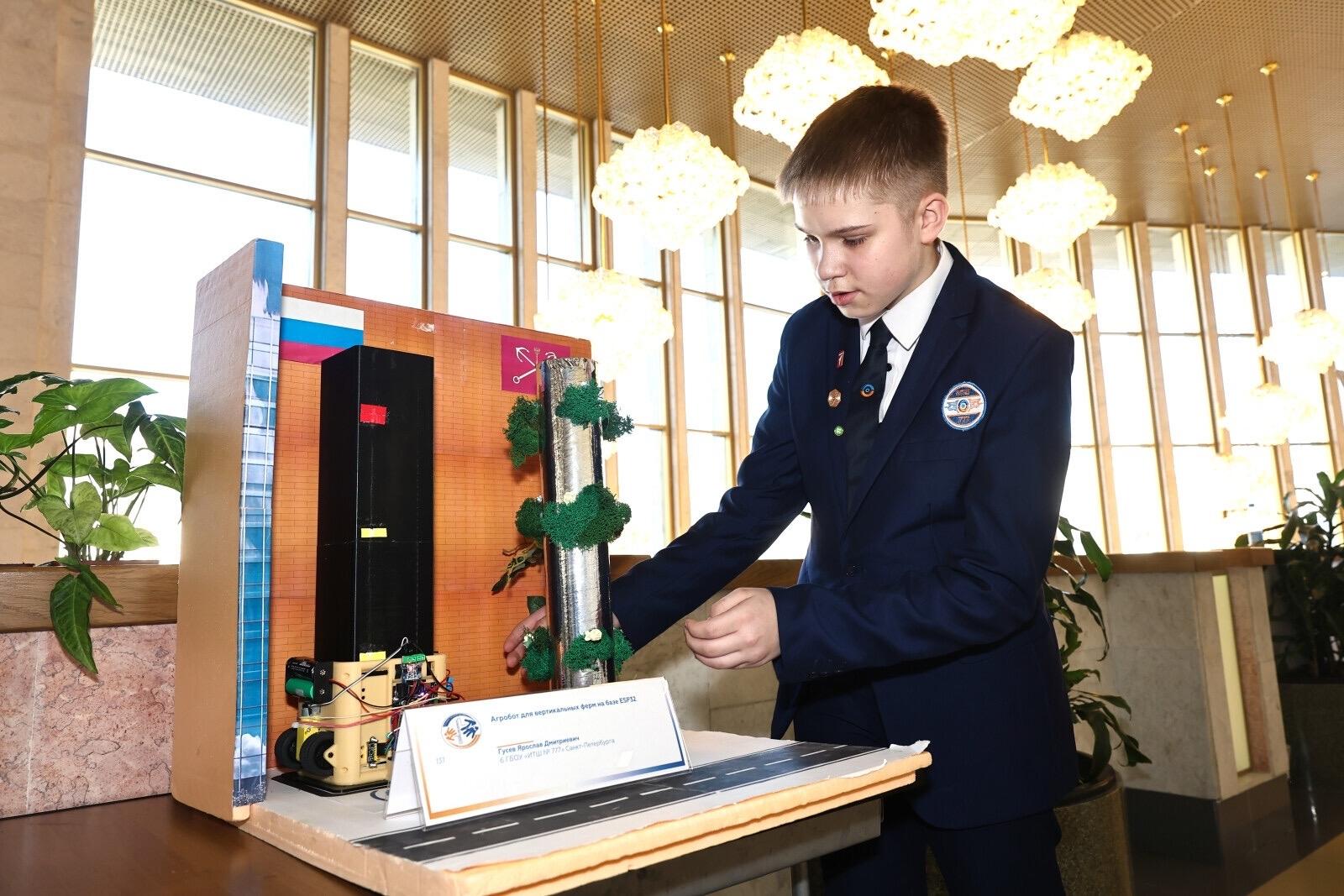 «Ученые уже доказали, что на Луне есть лед. На макете у нас – несколько отделений станции. Это плавильная, очистка, электролиз. Лед сначала попадает в плавильную, его растапливают, и получается вода. Потом жидкость надо очистить. После чего вода в процессе электролиза разлагается на водород и кислород. Потом все это поступает в специальные баки и отправляется для заправки ракеты», – рассказал ученик инженерно-технологической школы № 777 Приморского района Лука Орлов.