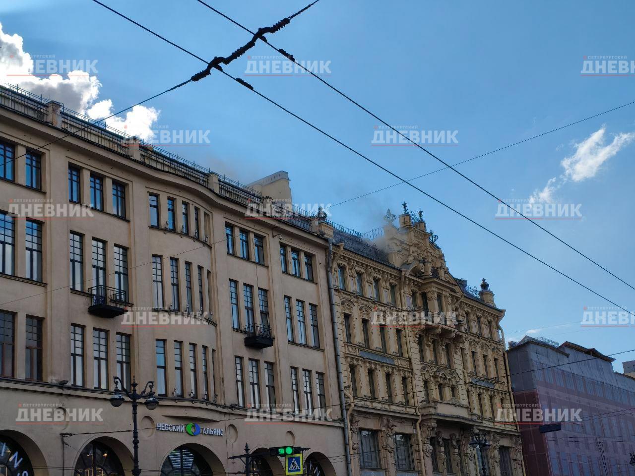 Сам пожар на Невском, 65, вспыхнул днём 13 апреля и охватил 600 квадратных метров чердака. Из здания эвакуировали 18 человек, пострадавших нет. Сейчас открытое горение ликвидировано.
