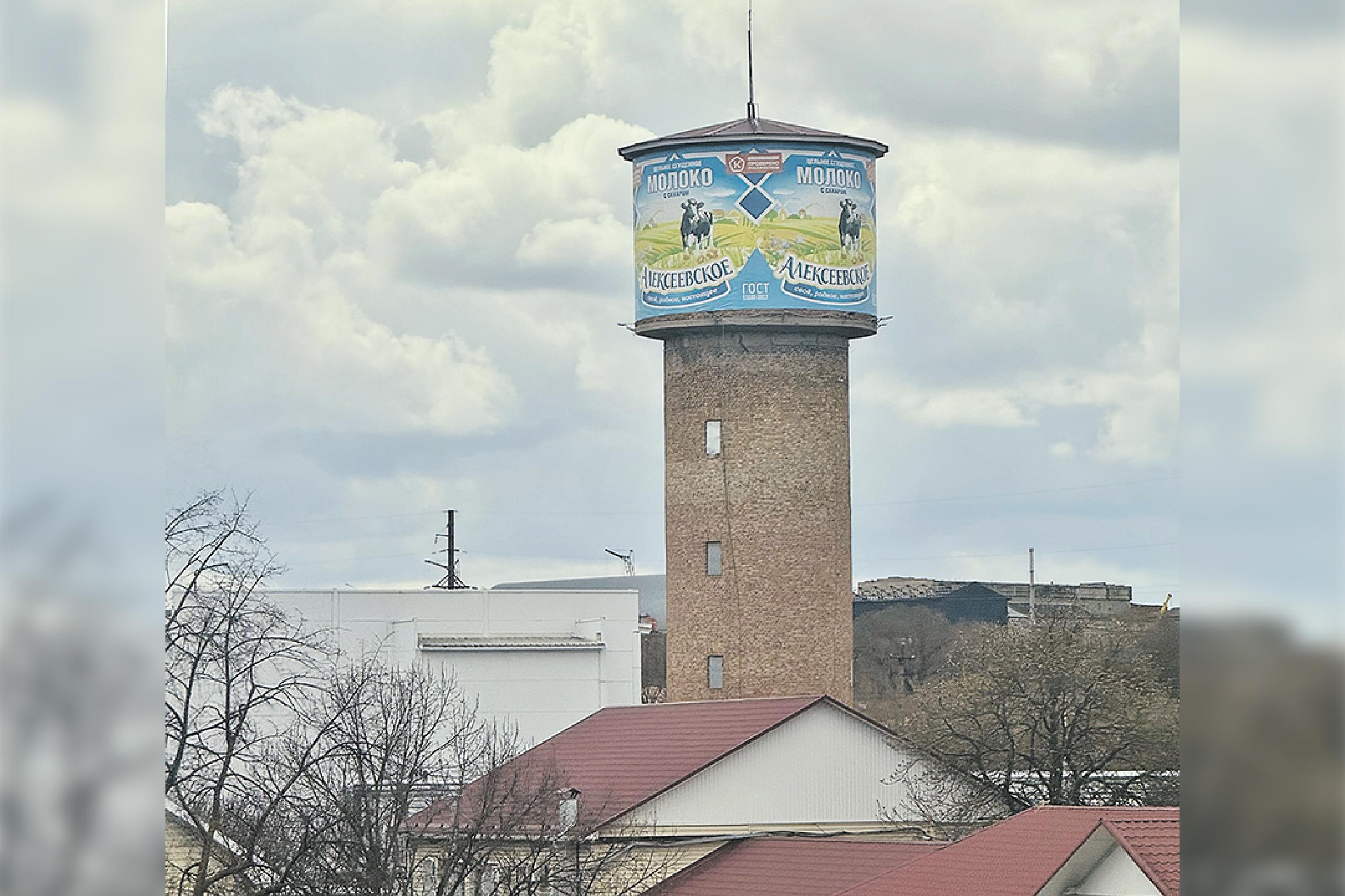 Заезжаем в Алексеевку, и я не сразу понимаю, что этот небольшой городок мне хорошо знаком – благодаря моим детям. С крыши краснокирпичной водонапорной башни на всех прохожих смотрит та самая банка сгущенного молока с хрестоматийной коровой: «Свое, родное, настоящее».