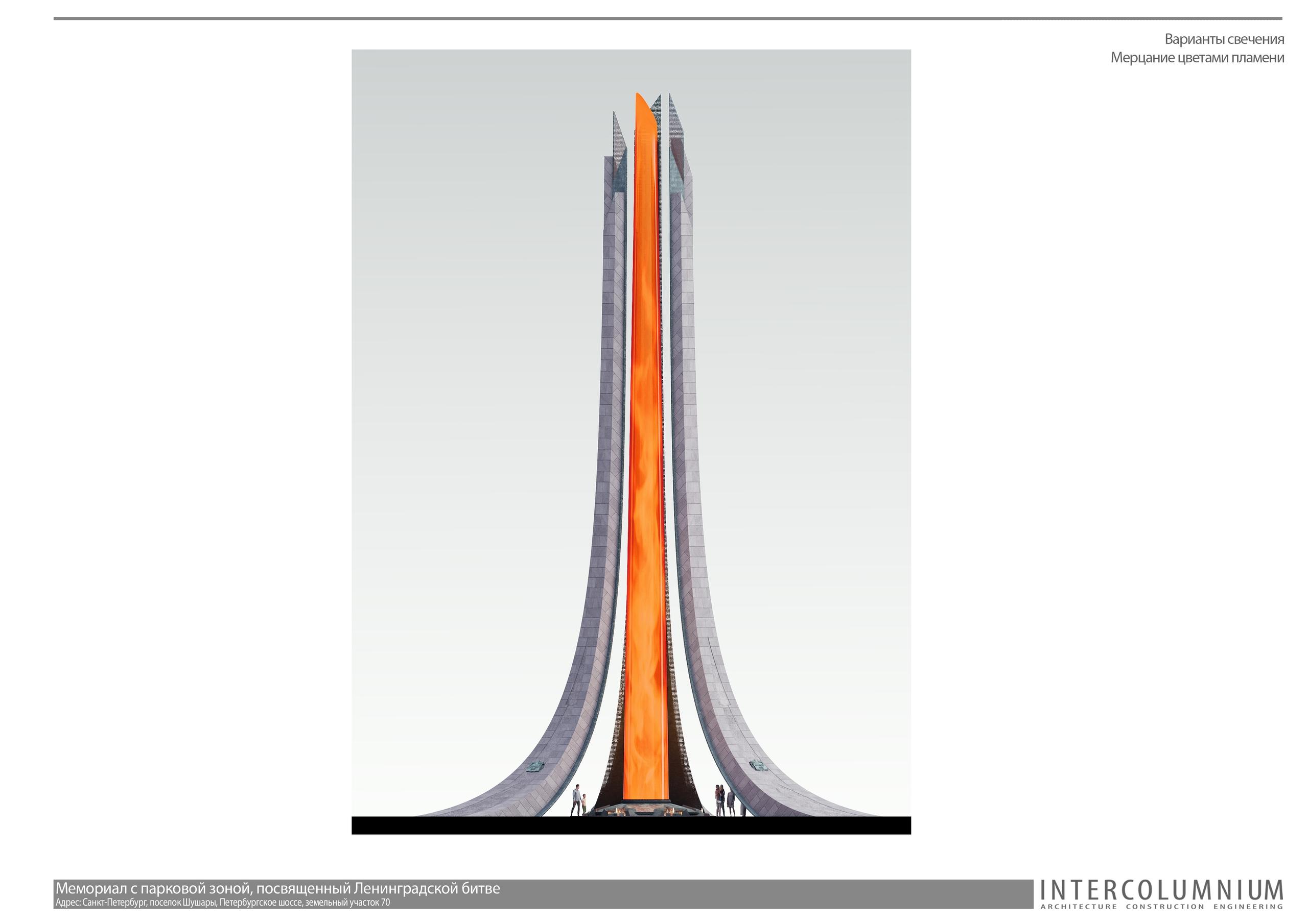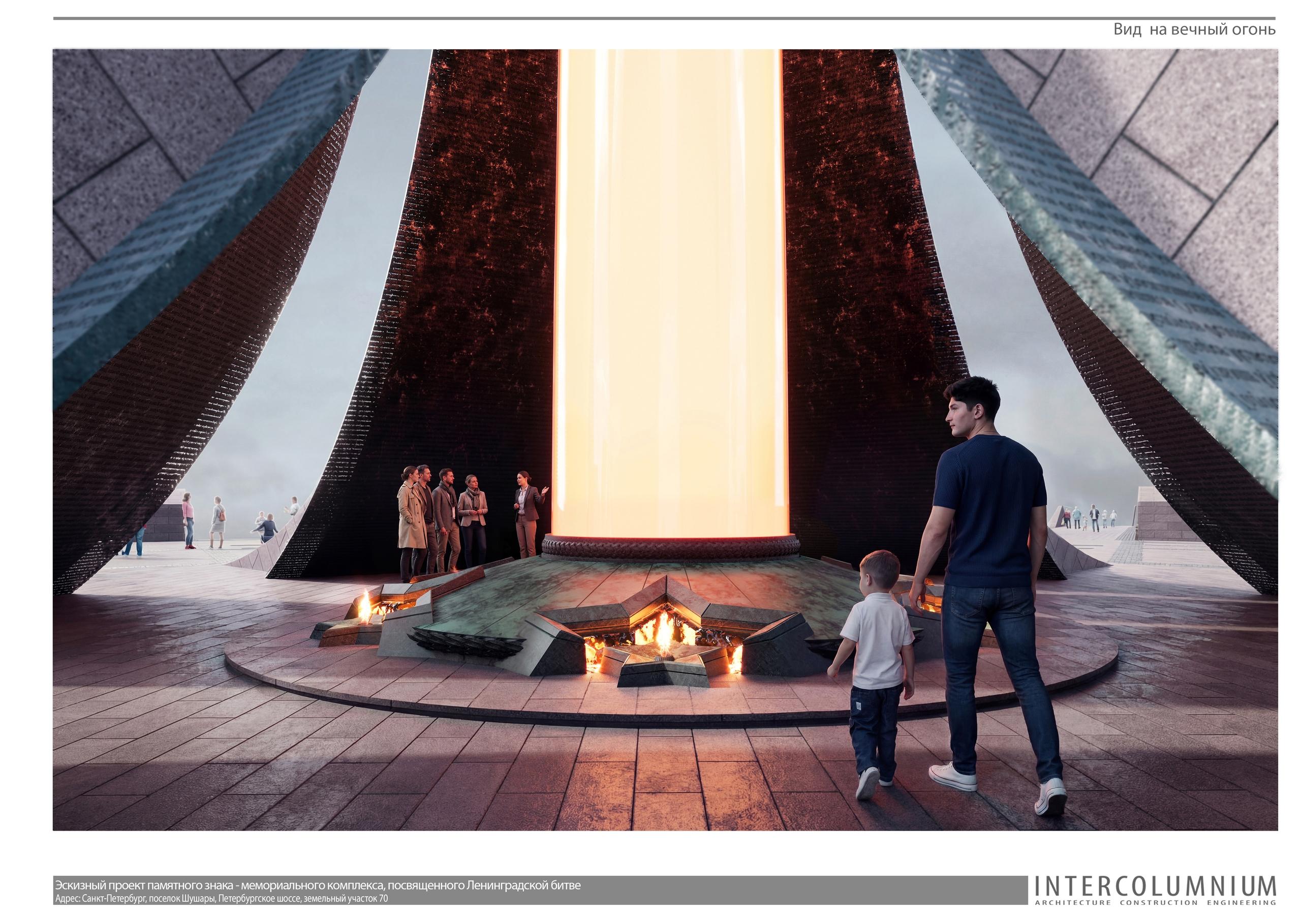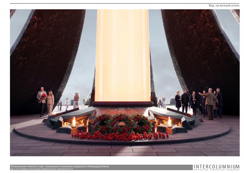 «По сравнению с конкурсным вариантом облик памятного знака сильно не изменился. Но есть элементы, которые мы добавили. Внутри светового столба, в просвете между гранитными стелами, мы расположили шесть конструкций, каждая из них представляет собой вечный огонь», – рассказывает Евгений Подгорнов.