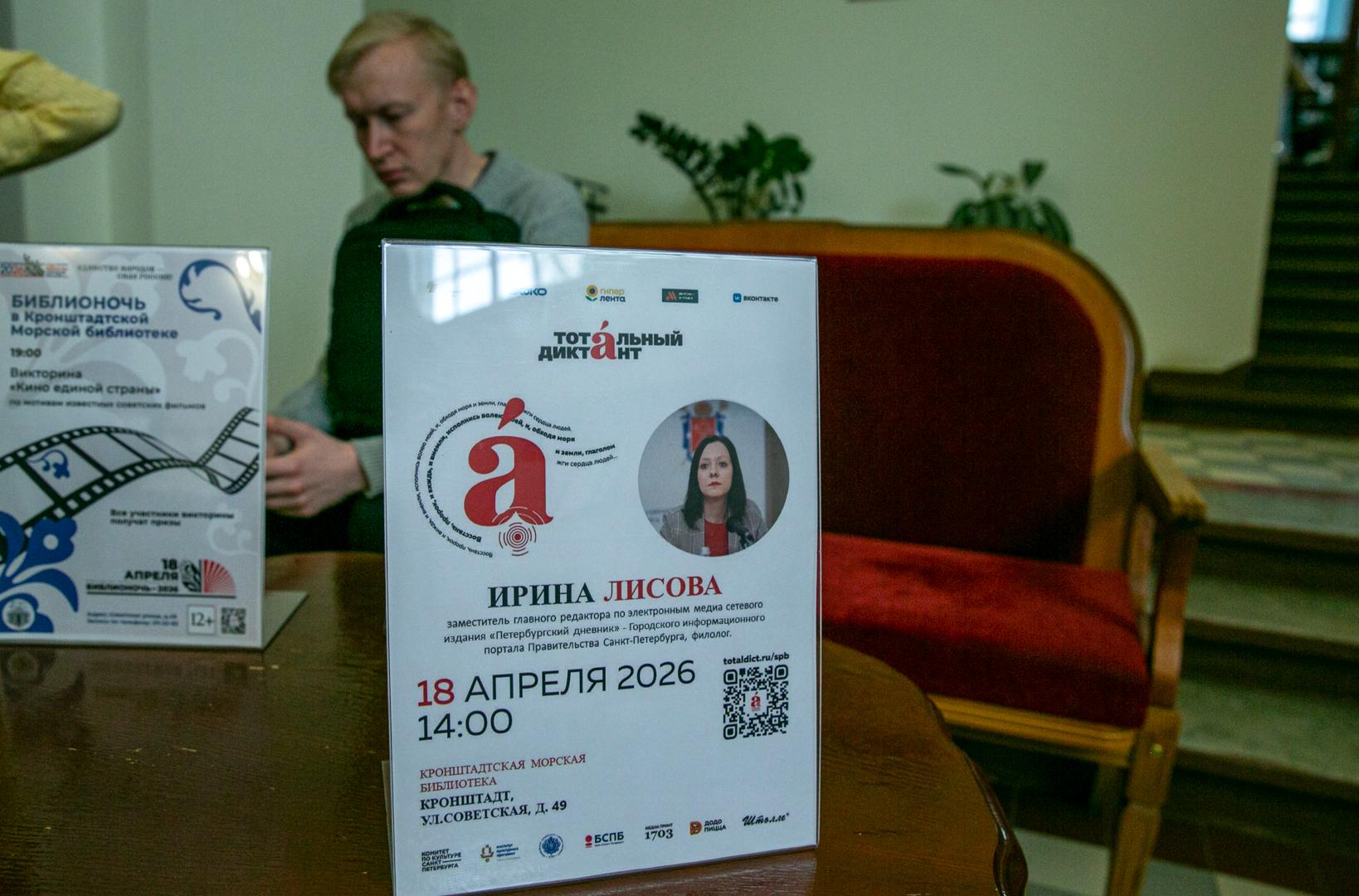 Сегодня, 18 апреля, русскоязычные граждане России и других стран писали Тотальный диктант. Мероприятие проходит каждый год и привлекает самых разных участников. В Петербурге Тотальный диктант прошел более чем на 230 площадках. Одной из них стала Морская библиотека Кронштадта. Текст диктанта здесь прочитала заместитель главного редактора по электронным медиа сетевого издания «Петербургский дневник» Ирина Лисова.