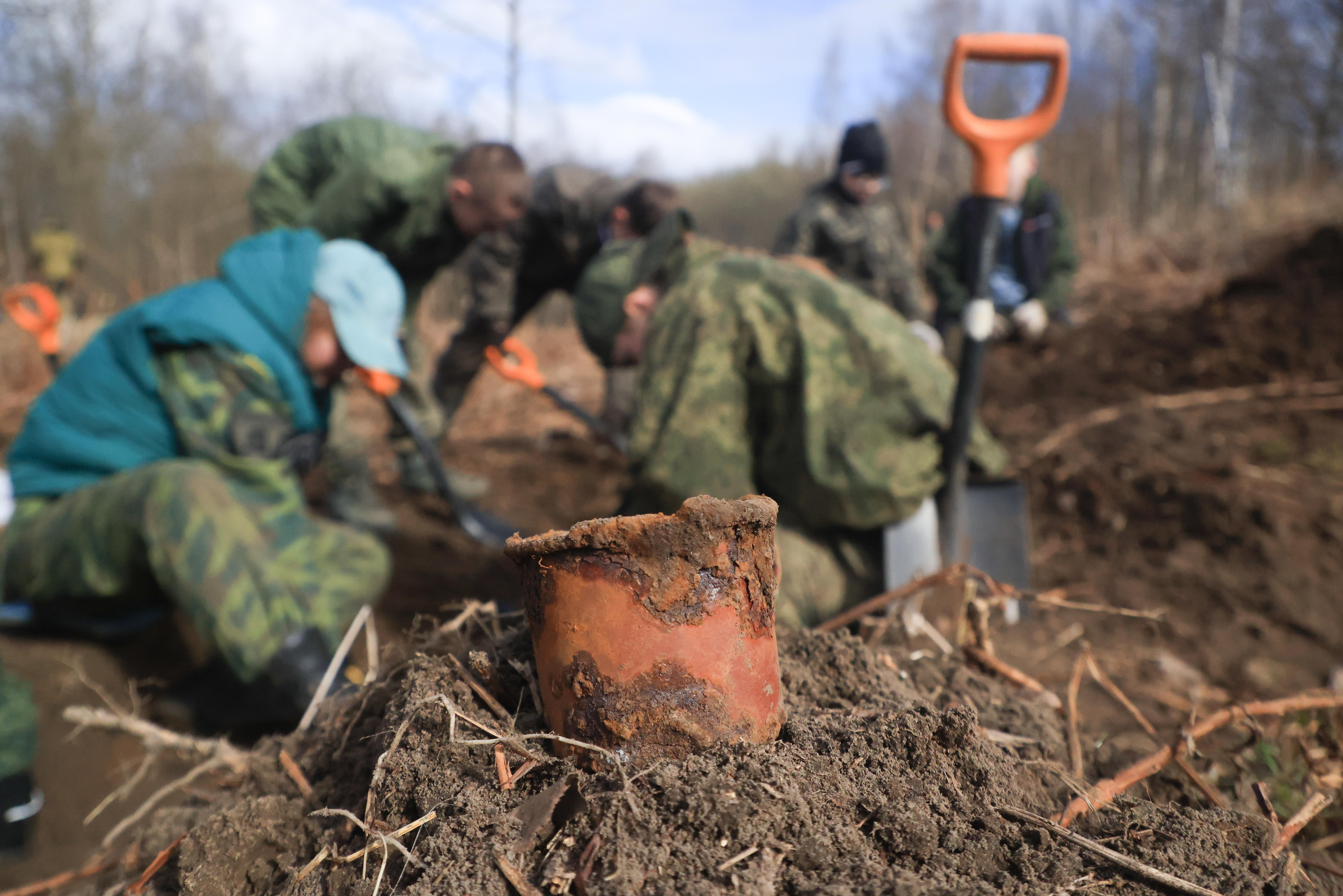 После торжественной части отряды отправились на места проведения полевых работ. Уже сегодня, во время первых в этом сезоне раскопок, на незначительной глубине были обнаружены останки солдата.