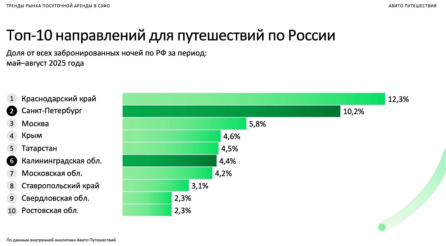 Авито Путешествия: Санкт-Петербург — второй в рейтинге самых популярных направлений для поездок по России