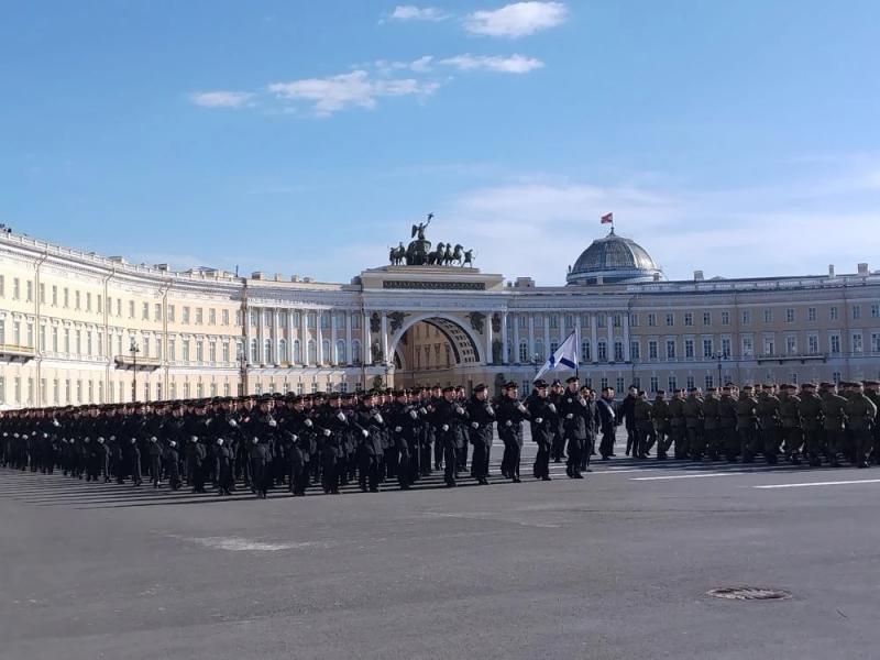 По традиции в преддверии Дня Победы в городе пройдут несколько репетиций. Главный парад состоится 9 мая на Дворцовой площади. Показываем, как прошла первая тренировка.