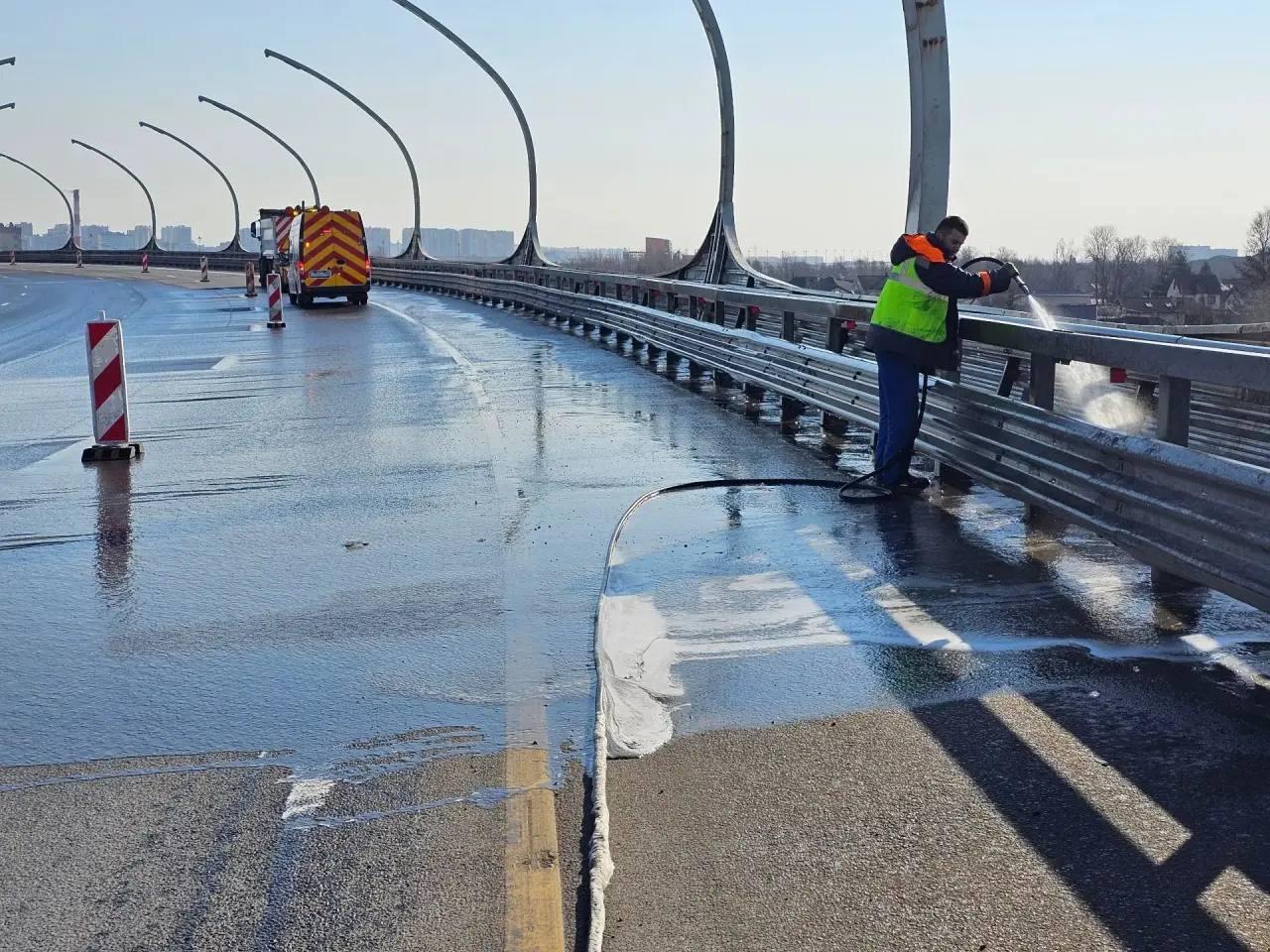 Пока автомобилисты преодолевают километры Западного скоростного диаметра, на магистрали кипит большая работа по наведению чистоты после зимнего сезона. Как сообщили в пресс-службе ЗСД, специалисты и машины моют барьерные ограждения, шумозащитные и декоративные экраны, а также пункты взимания платы на всей протяжённости дороги.