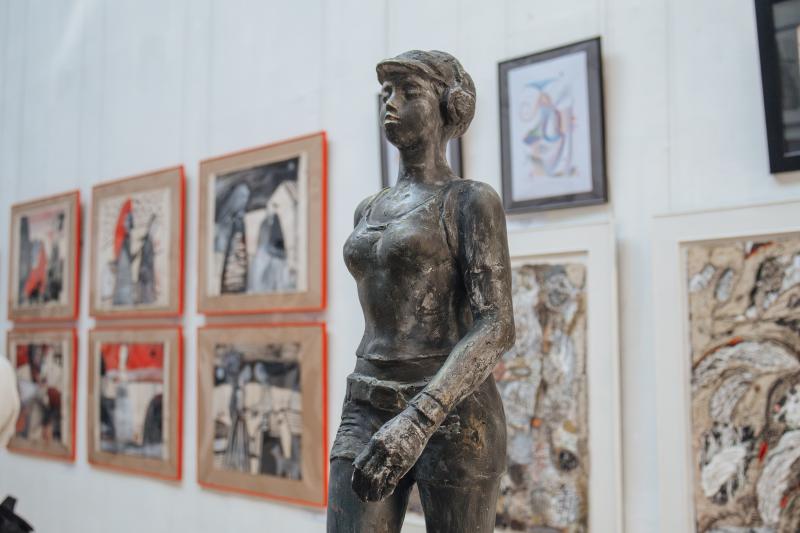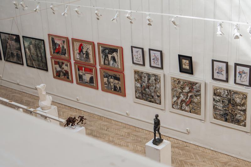 Тем временем посетители перешли в зал, посвященный художникам – участникам Великой Отечественной войны. Во время блокады Ленинграда на первом этаже Большой Морской, 38 функционировал госпиталь.