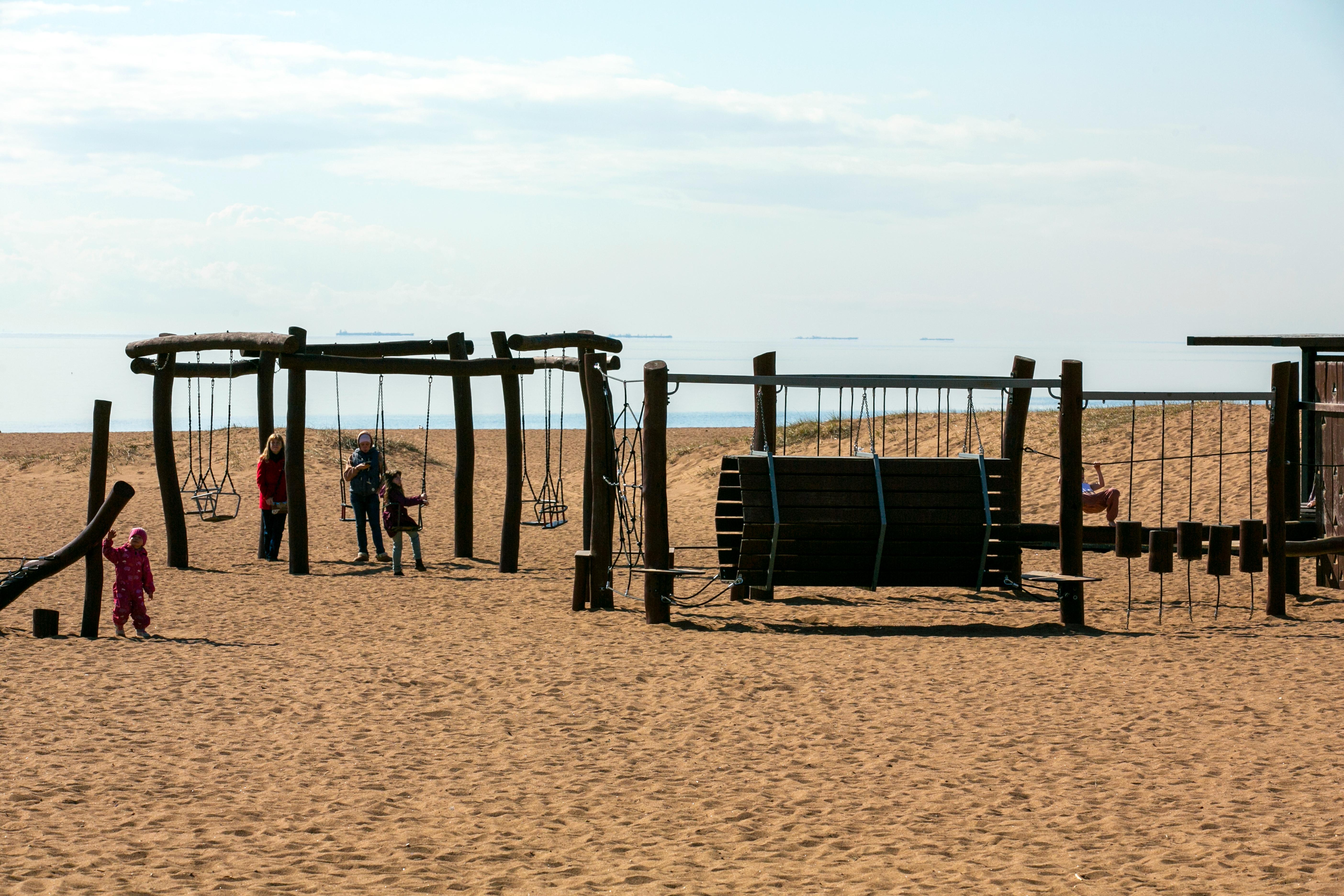 Детский пляж находится в поселке Ушково Курортного района. Он расположен рядом с детскими лагерями и санаториями. «Сюда приезжают семьи с детьми. Родители отдыхают, а дети проводят время на игровых площадках», – рассказал Алексей Фисяк.