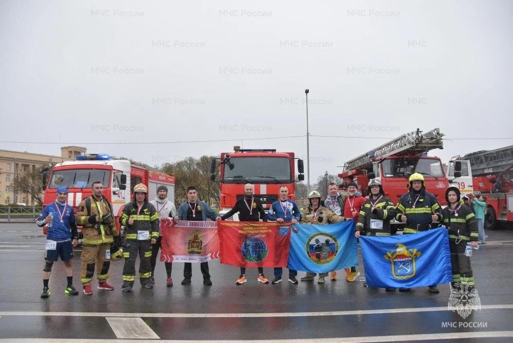 После официальной части мероприятия, в ходе которой наградили особо отличившихся сотрудников и почтили память погибших пожарных, спортсмены отправились на дистанцию. Были в их числе и петербургские спасатели в боевой одежде.