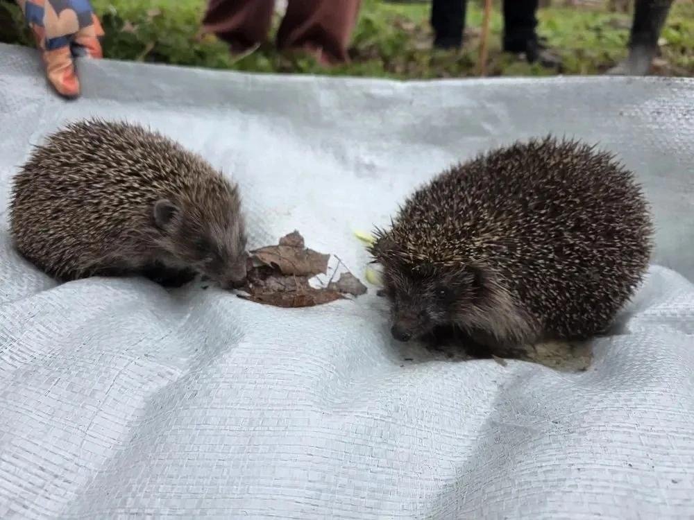 В разгар субботника в Гатчине сотрудники администрации Ленинградской области спасли двух ежиков, которые упали в забетонированное углубление
