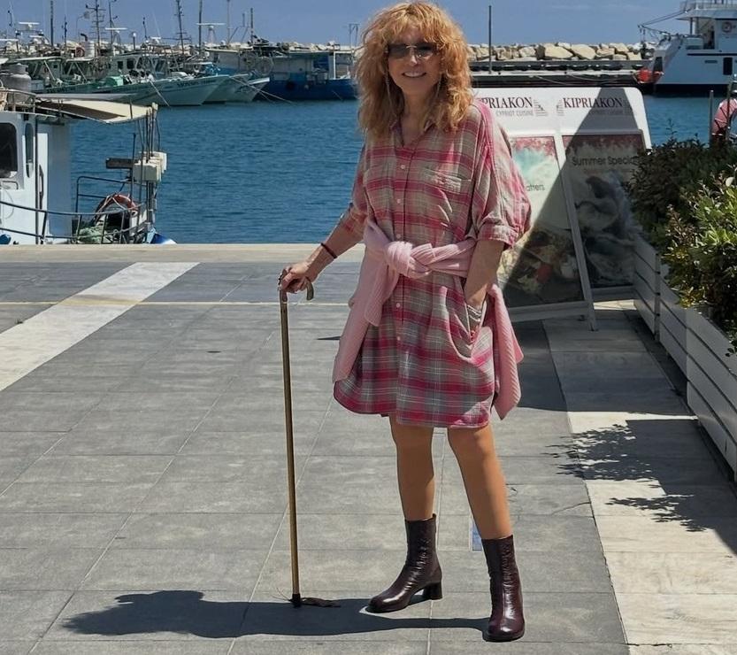 77-летняя Алла Пугачева ходит на Кипре в розовом мини-платье, но опирается на трость