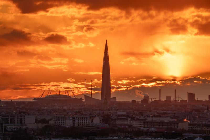 Небо над Петербургом в понедельник вечером, 27 апреля, окрасилось необычайно красивым закатом.