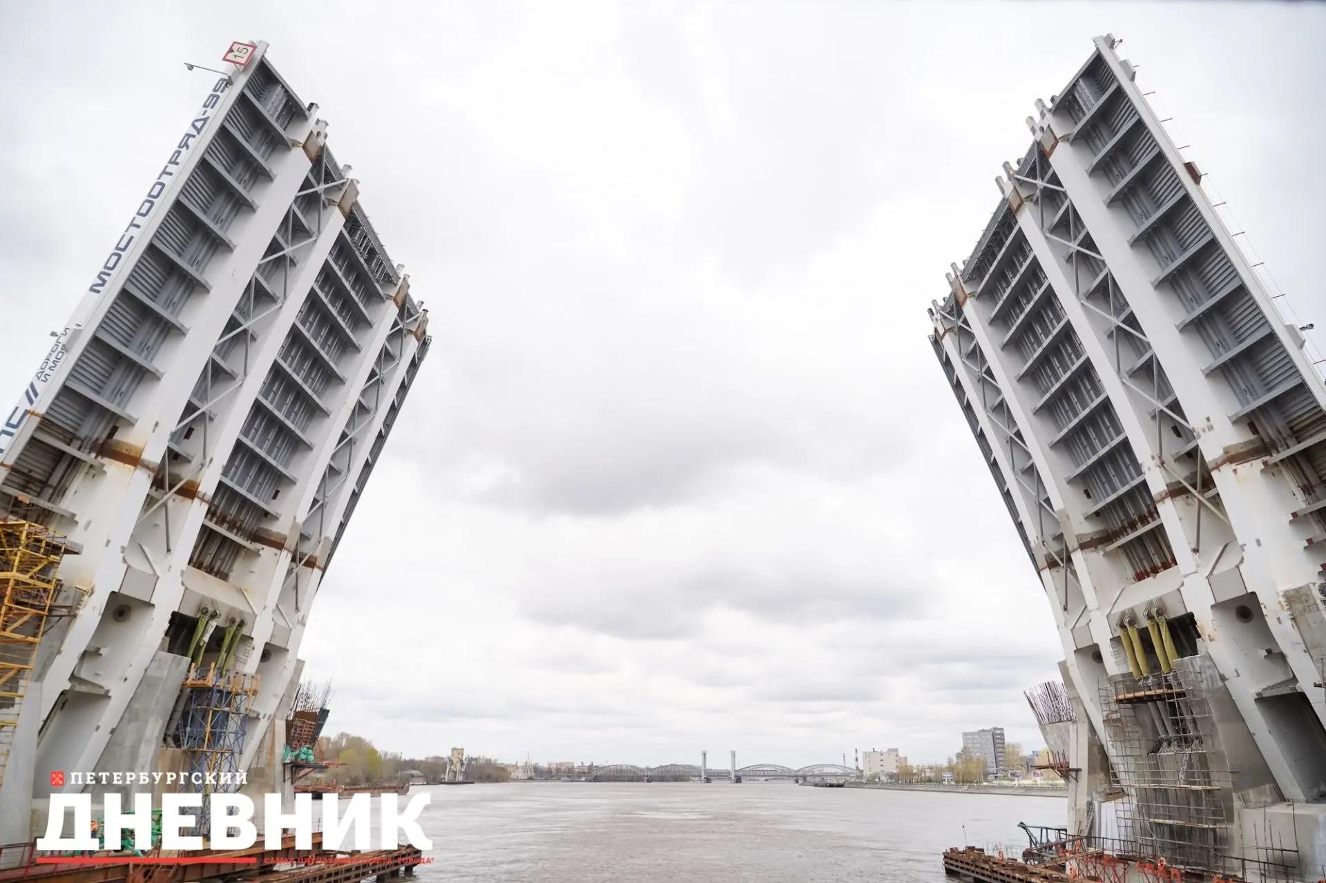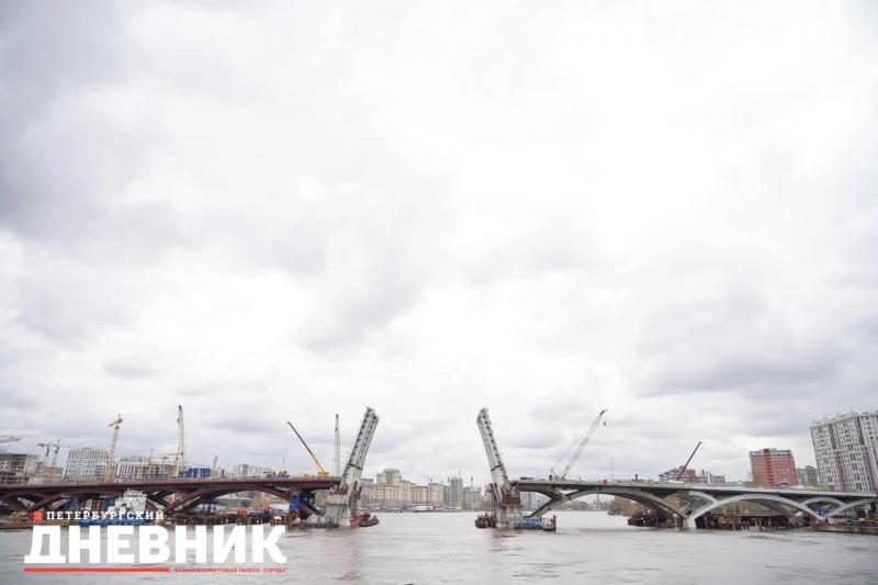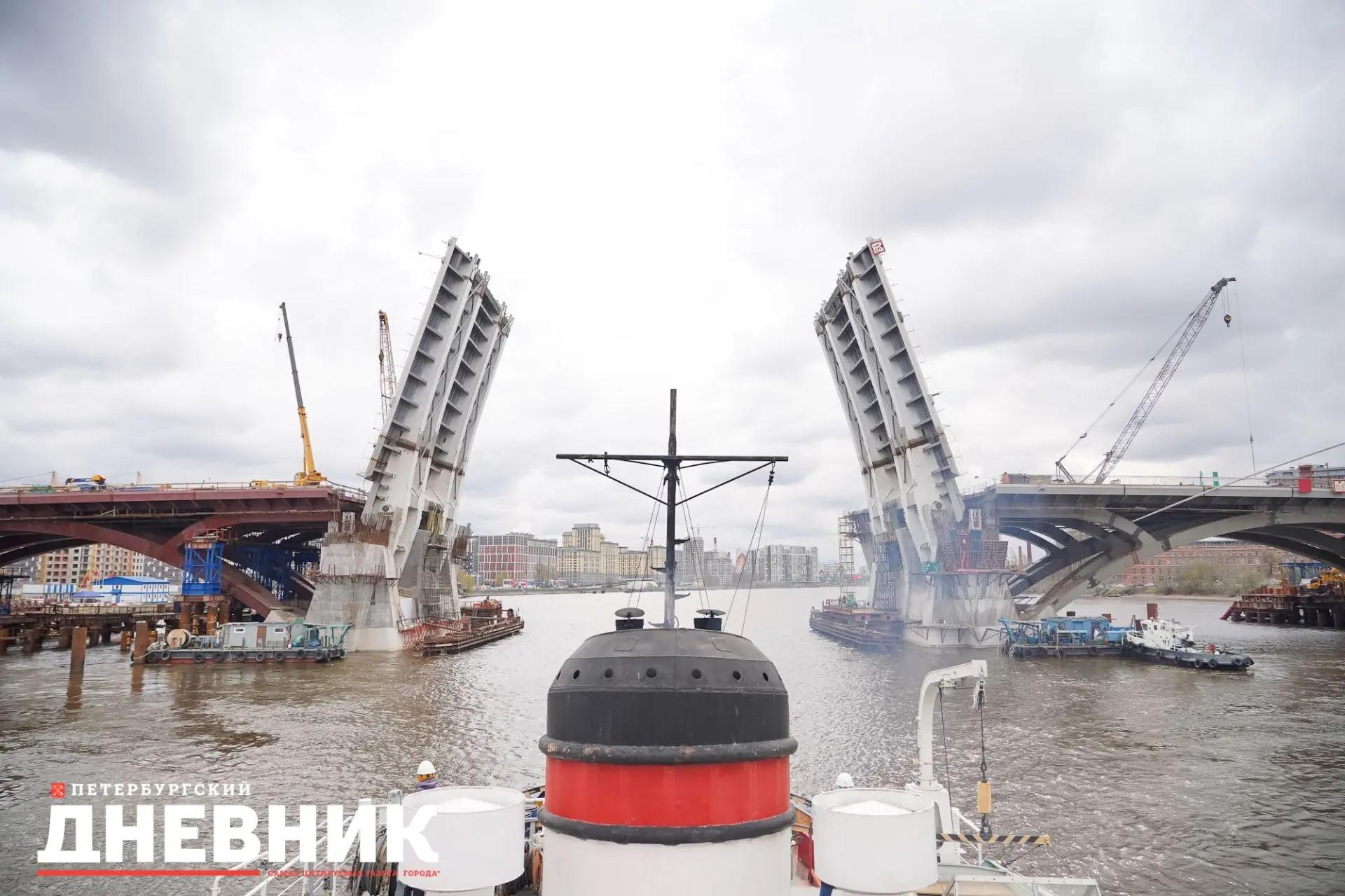 Сейчас мост готов к пропуску крупногабаритных судов по фарватеру Невы. В ночь с 24 на 25 апреля оба разводных пролета впервые подняли на проектные 72 градуса.