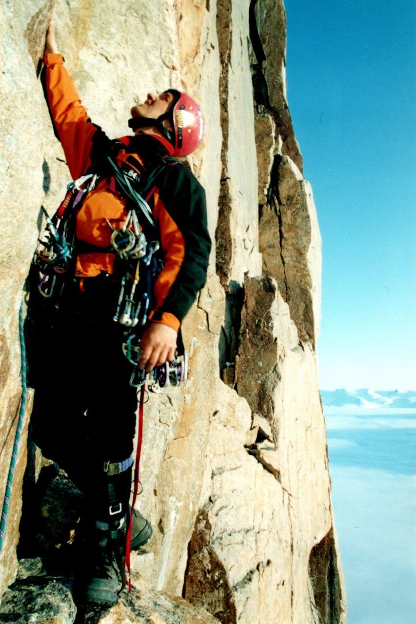 В этот день Ручкин работал первым, а я был предпоследним. Мы уже поднялись наверх на ту крутую стенку, я ухожу от Игоря метров на десять и вдруг слышу крик. Саша Кленов кричит: «Камень!» Рефлекс сработал. Я успеваю найти укрытие. Сверху летел огромный кусок скалы. Ударился метрах в трехстах над нами и рассыпался на мелкие шрапнели, перерубив, как будто ножом, все веревки. Ну и Игоря убил… На наших глазах он улетел в бездну. Глубина падения составила около 1500 метров – до самого подножия стены. Трагедия произошла в 2001 году. Эта гора как бы пригрозила мне пальцем.