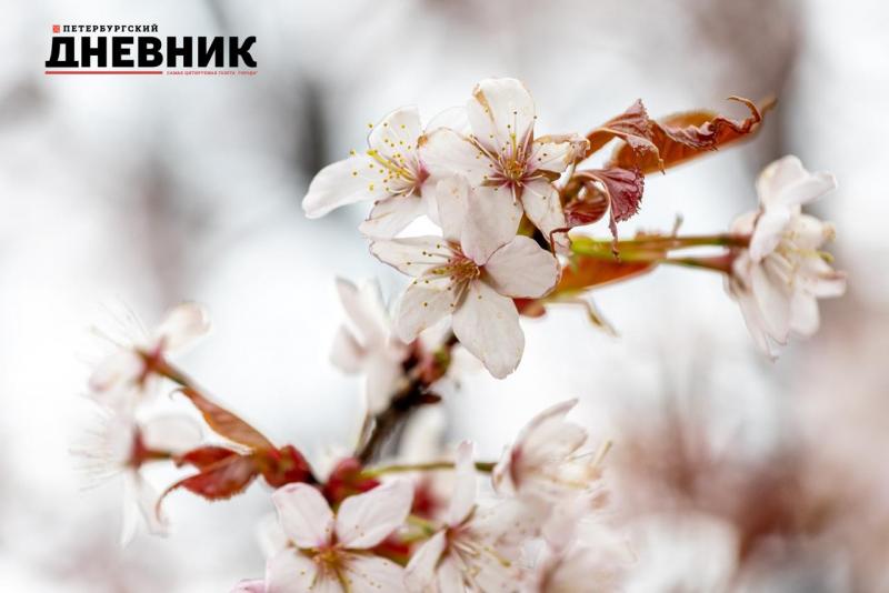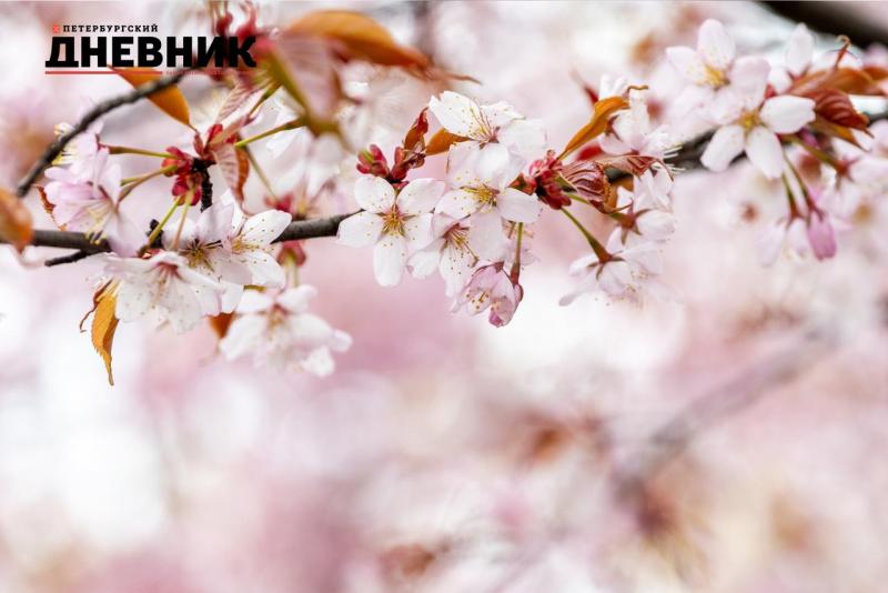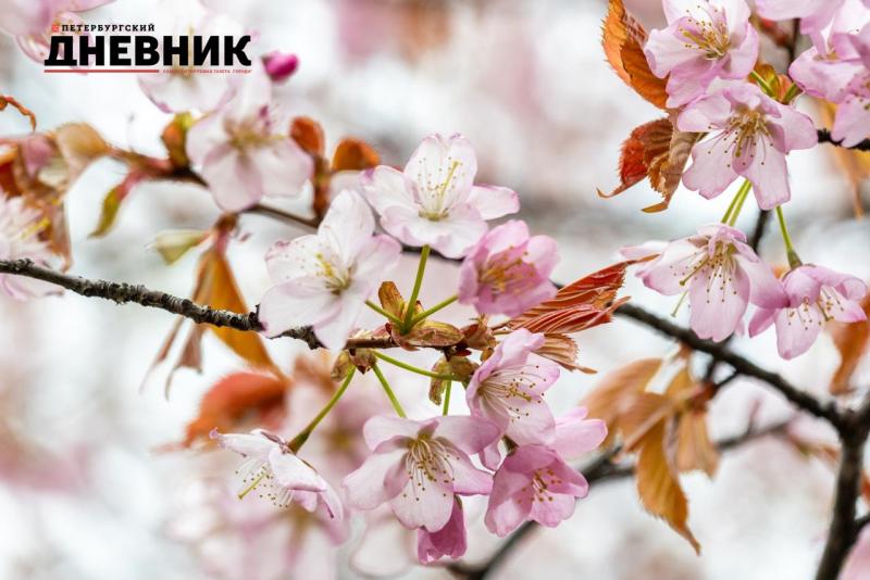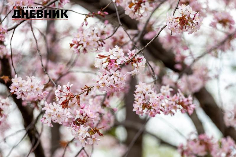 Фотокорреспондент «Петербургского дневника» запечатлел цветение сакуры в Саду-партере Смольного.